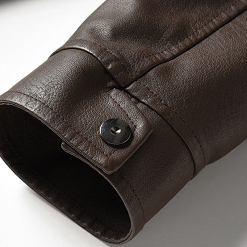 Men's Vintage Double Collar Leather Long Sleeve Zip Fly Bomber Jacket 26675178M