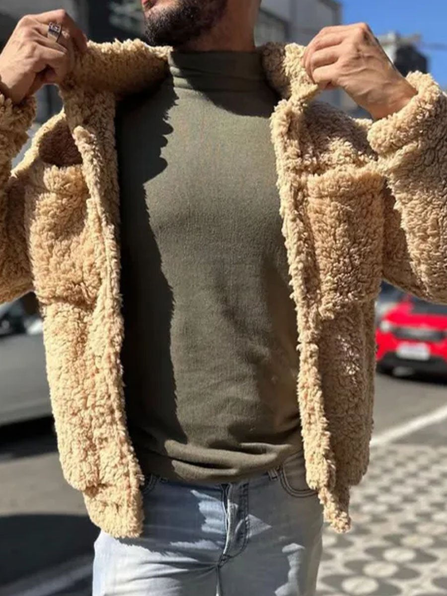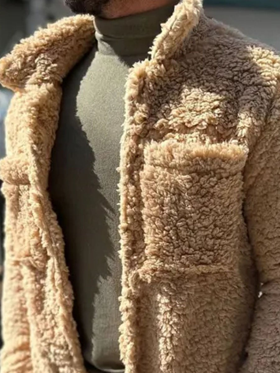 Description: Stay comfortable and stylish in our Sherpa Double-Pocket Single-Breasted Lapel Thermal Coat. This jacket seamlessly combines lapels with plush sherpa fabric, dual pockets and thermal insulation to add a warm and stylish touch to your wardrobe.